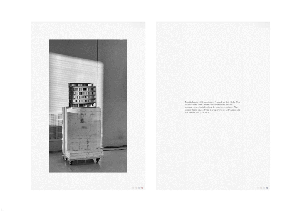 Maridalsveien 31C consists of 11 apartments in Oslo. The duplex units on the first two floors feature private entrances and individual gardens in the courtyard. The upper floors house three-bay apartments with access to a shared rooftop terrace