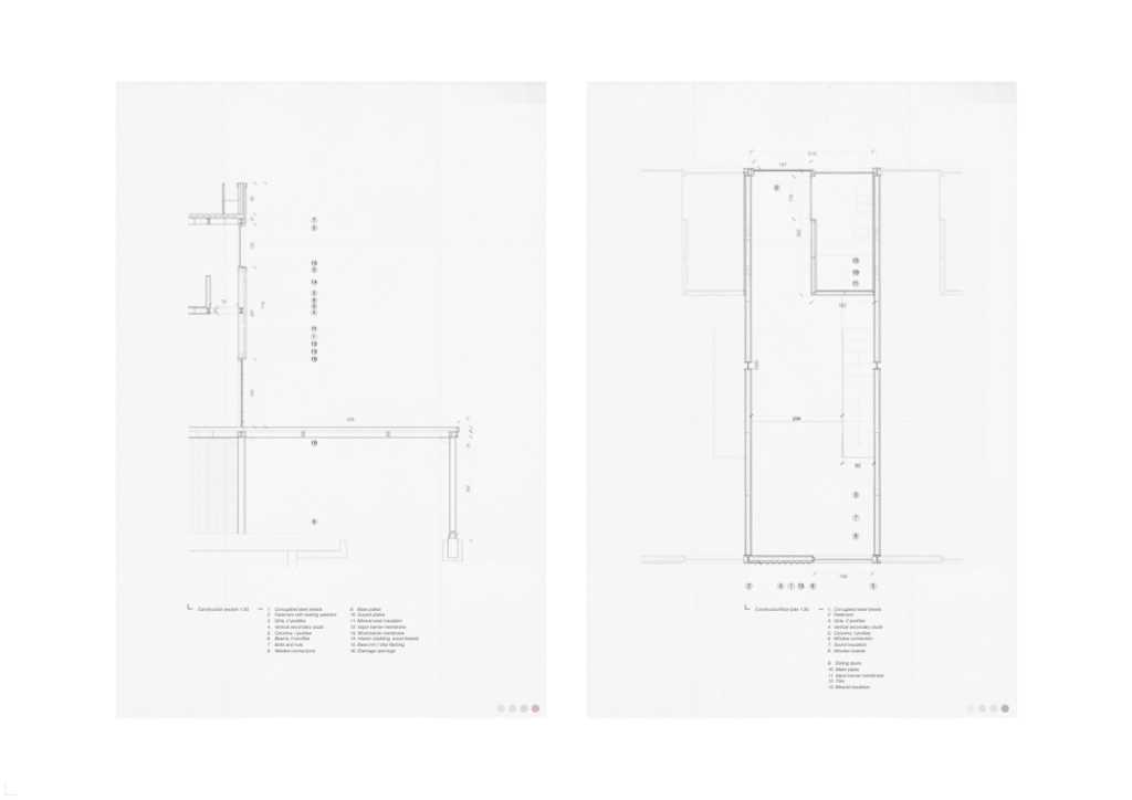 Physical project consisting of concrete elements, paper, and wood.