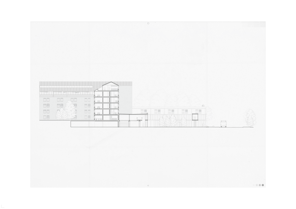 Parking structure with multiple programs connected to Gjettum.