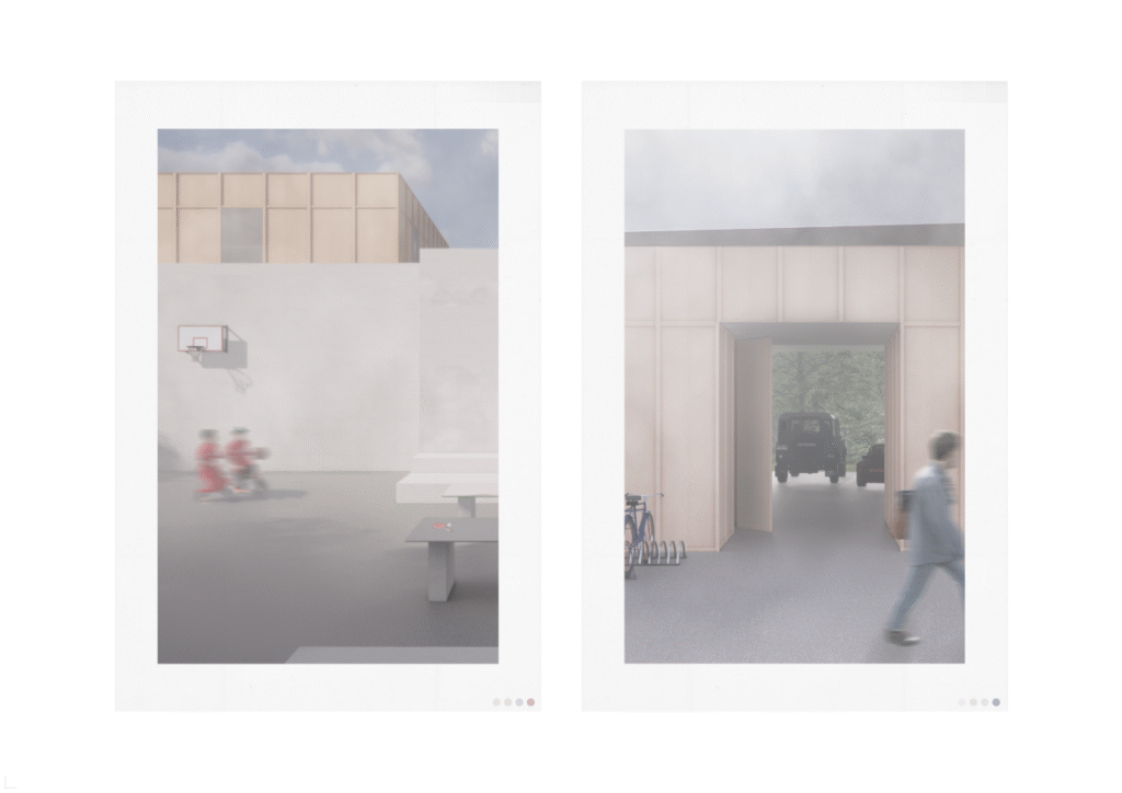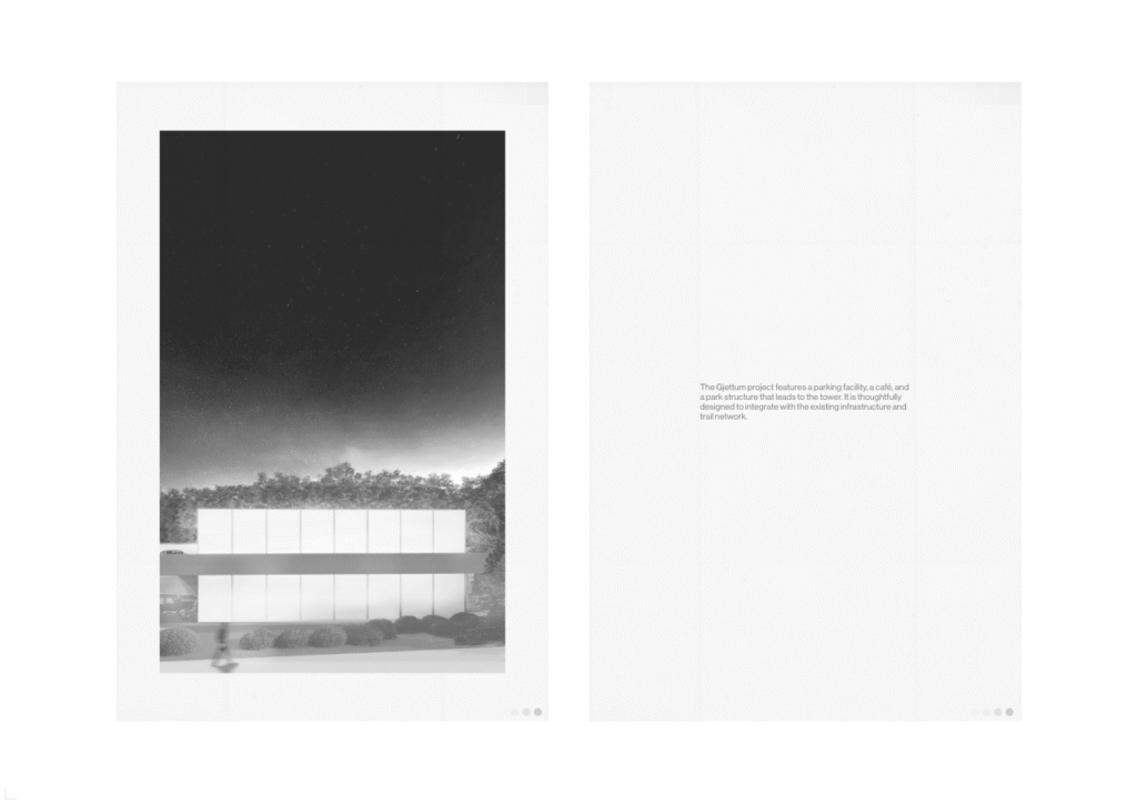 A project built on a parking lot, featuring a parking structure with various programs tailored to the needs of residents and visitors in the area. The project integrates with an existing trail system, connecting the Gjettum area with other neighborhoods in Bærum vest.